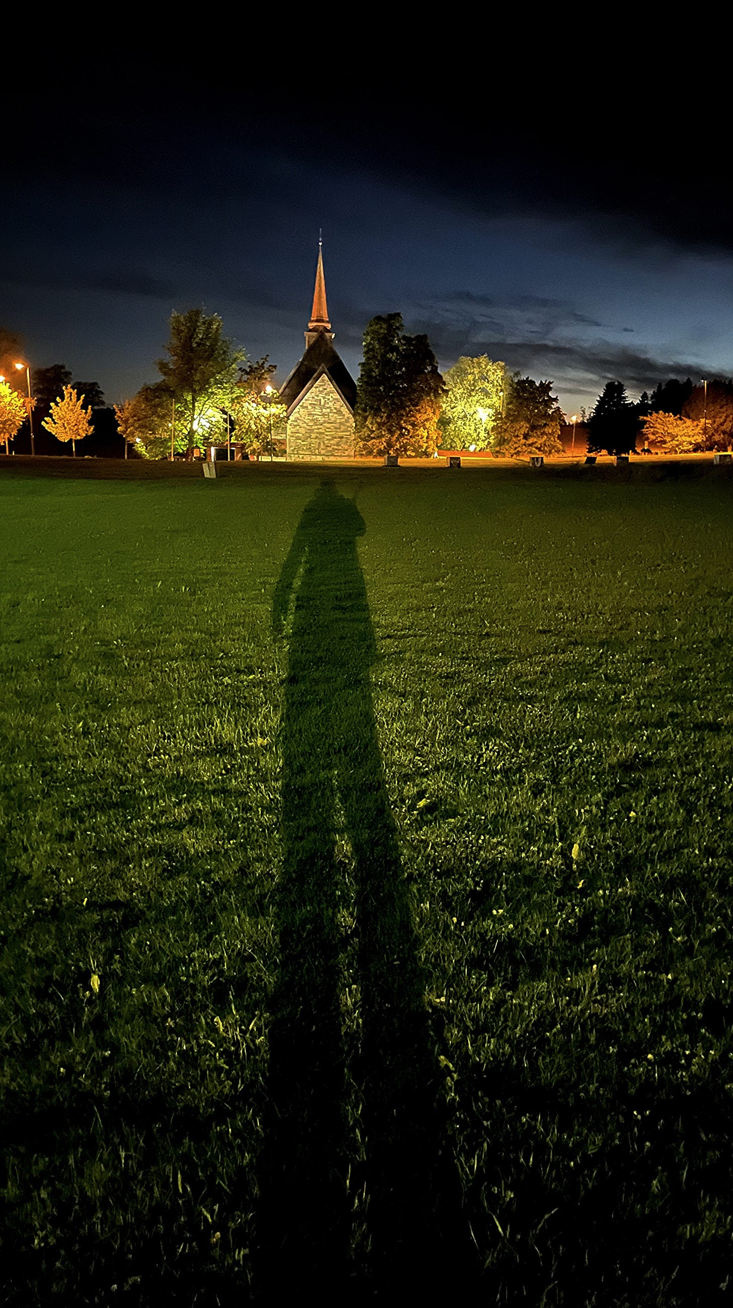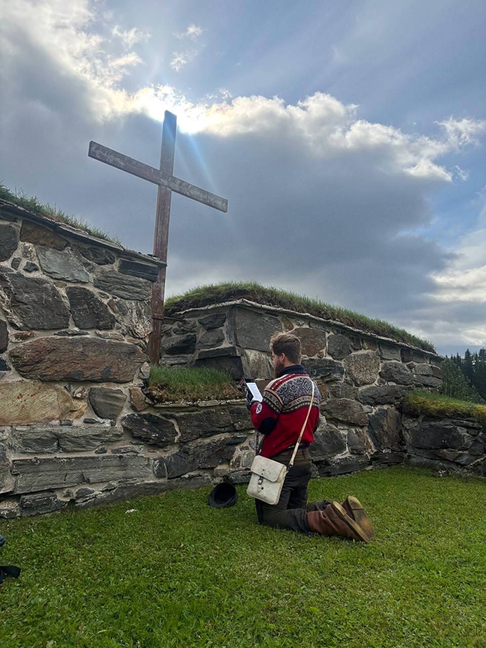 When Sebastian and I arrived at Stiklestad, the place where St. Olaf fell in battle, it was late at night. It was only the two of us, walking into that field, with no one else around but for one clerk behind the desk of the nearby hotel.
