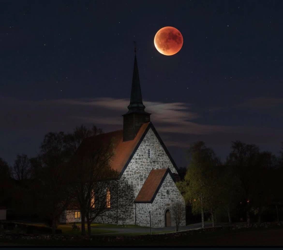The day after this picture was taken of a blood moon over Stiklestad by Arild, I took the train down to Trondheim to meet with the lead archaeologist at Nidaros Cathedral: Dr. Øystein Ekroll. I had spoken with him over the course of several months prior to the pilgrimage in hopes of meeting him face-to-face.